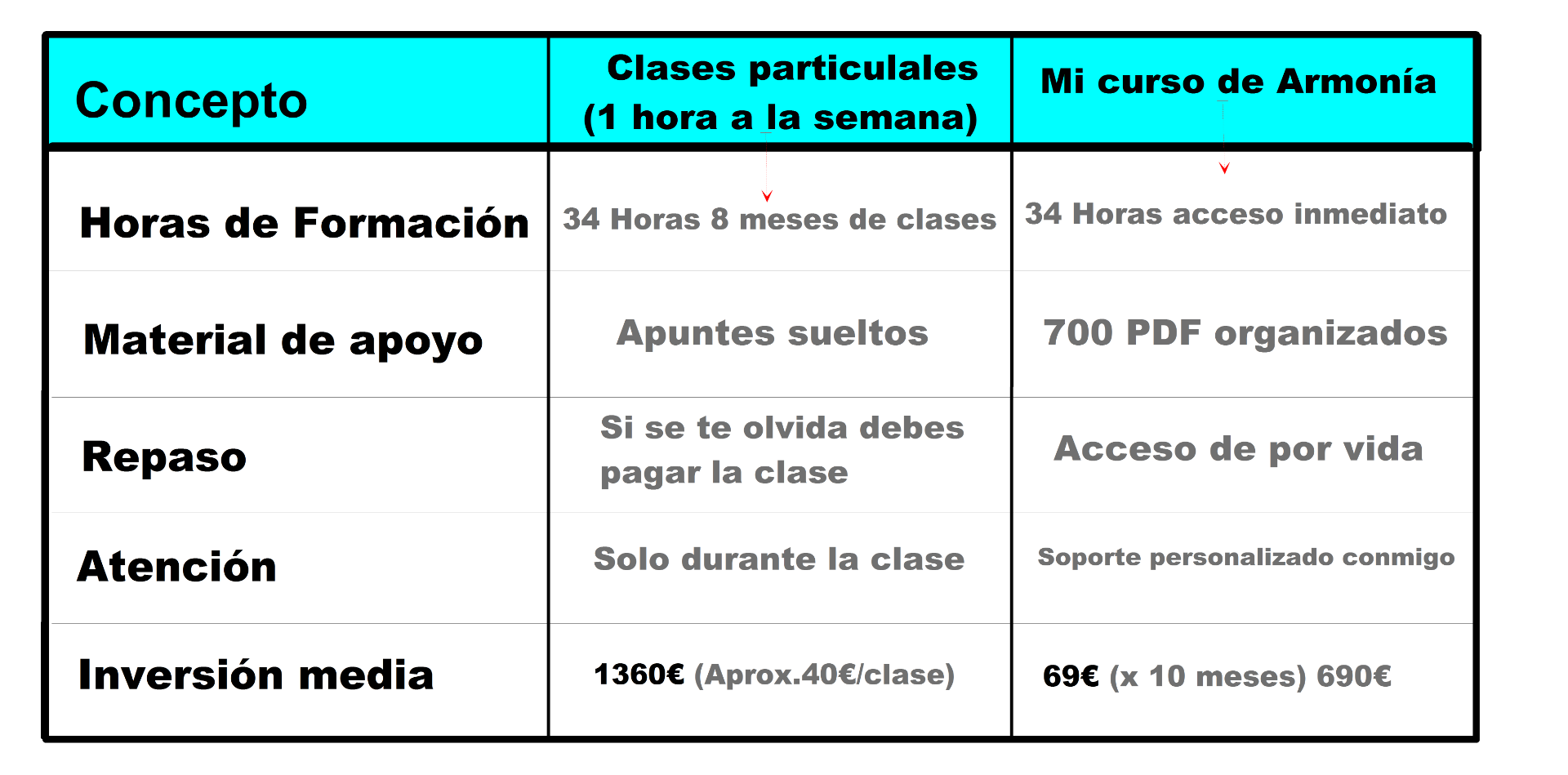 Atención personalizada, sin límite de tiempo y con el profesor.